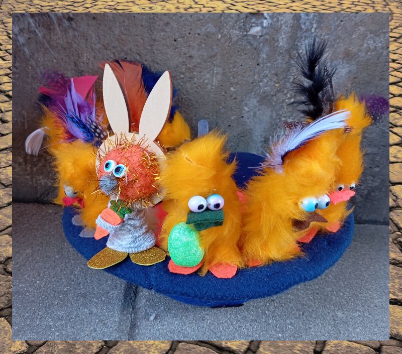 – Ein Plastik-Deko-Ei in der Mitte zerschneiden – Aus einem Stück flauschigem Stoff den Körper des Kükens formen – In die untere Eierschale einkleben – Augen und Schnabel aufnähen oder aufkleben – Obere Eierschale aufsetzen und ankleben